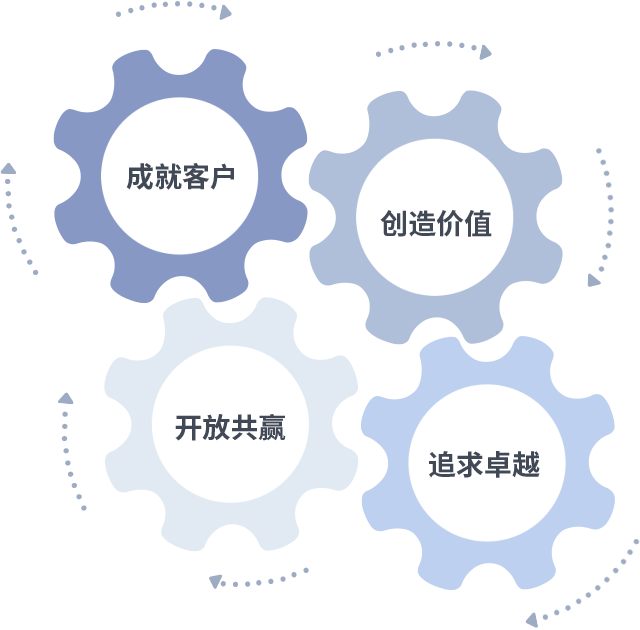 成就客户是一切决策的出发点,创造价值是衡量所有工作的标准,追求卓越是乐盈做事做人的态度,开放共赢是乐盈的格局也是最终的结果。价值观的齿轮环环相扣,推动着组织里的每个人不断向前。